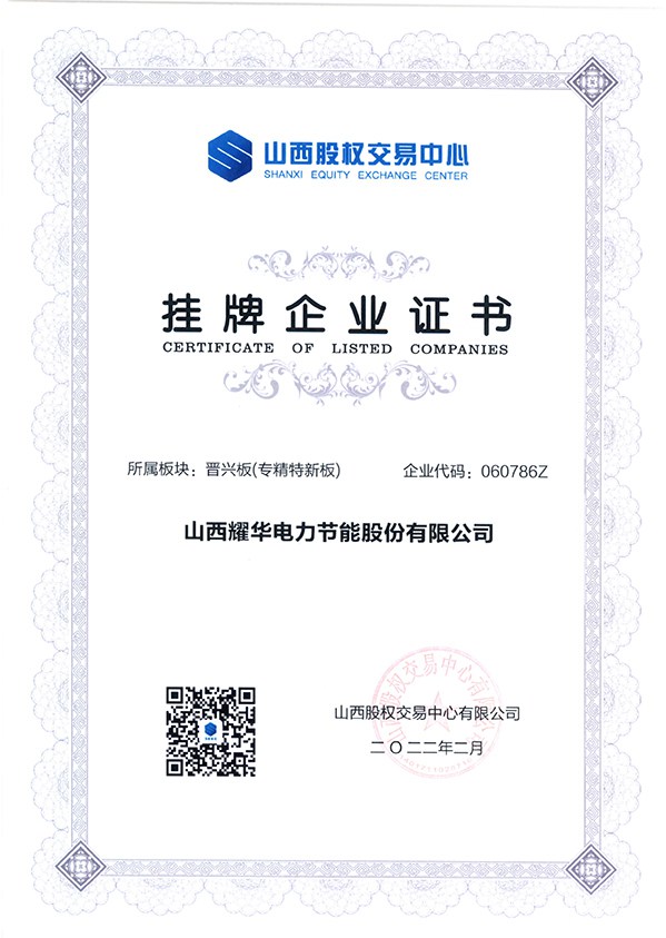 山西耀華電力節(jié)能股份有限公司是國內(nèi)第一家提出谷期電集中儲能蓄能的高新技術(shù)企業(yè),其主營業(yè)務:電力市場購售電交易運營、電力設施安裝檢測運維、 低谷電采暖設備的研發(fā)、生產(chǎn)、安裝、銷售及運行服務于一體。公司成立于1996年,落座于山西省太原市,現(xiàn)有股權(quán)代碼在晉興板上市的專精特新企業(yè),中國建設科技自主創(chuàng)新優(yōu)勢企業(yè),山西省節(jié)能協(xié)會理事單位,擁有自主知識產(chǎn)權(quán),獲得國家多項專利,參編了電采暖國家標準(JC/T60008-2021)和主編了山西省地方標準(DBJ04/T291-2012)。擁有國家發(fā)明專利11項,軟件著作權(quán)6項。其中“大數(shù)據(jù)遠程集中監(jiān)控運維服務平臺”早在2019年就在河北、天津、山西等多個煤改電地區(qū)投入試用,節(jié)能效果非常顯著,運維方便快捷,用戶滿意。